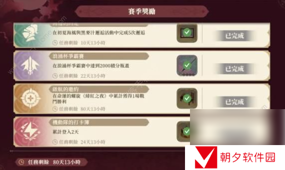 活动总任务分为签到和积分任务,签到一定天数才能开启活动武器材料任务,活动武器本体需要浪涌杯争霸赛积分到达2000领取。