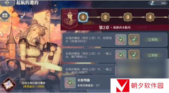 启程任务分为章节完成奖励和活动币积累任务,章节完成赠送活动币和晶石奖励;活动币主要赠送进阶材料和武器