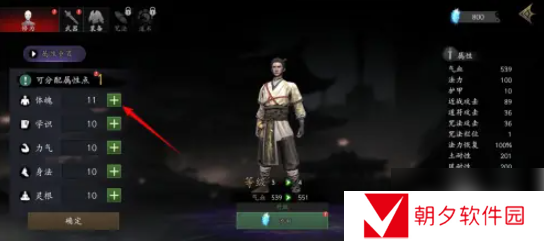 点击“+”图标可分配升级获得属性点。