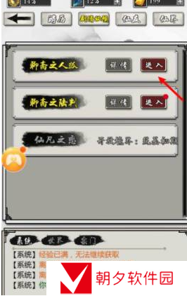 二、接着需要点击【进入】剧情秘境,每个章节需要一定境界才能进入,比如:聊斋之人狐需要练气中期才可以进入;