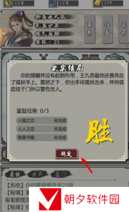 八、当如果胜利之后,会显示这剧情是【胜利】,还有提示要哪些任务可以重复完成。