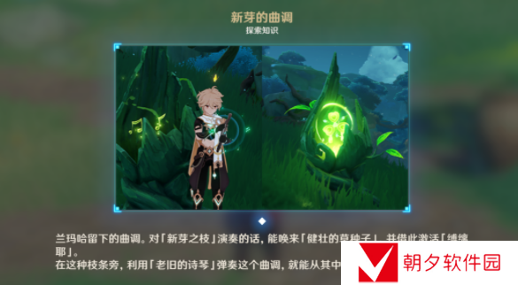 5.前往指定位置6.利用「新芽迸发的曲调」,开启通路,弹琴即可。