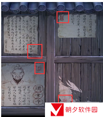 4、观察告示板上盖章的位置大家推断出箱子的密码从左至右分别是:右下、左上、右上、左下。