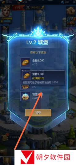 最后,看到城堡升级成功获得奖励即可。这样我们就知道谜题大陆城堡怎么升级了。如下图所示