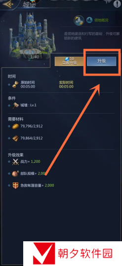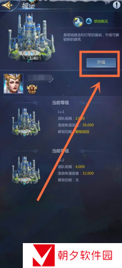 进入番低城堡界面后,点击【升级】进入。如下图所示