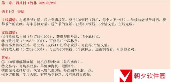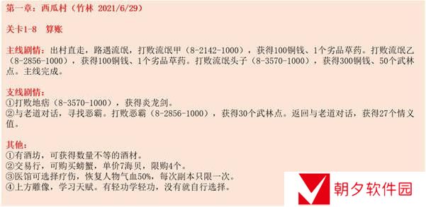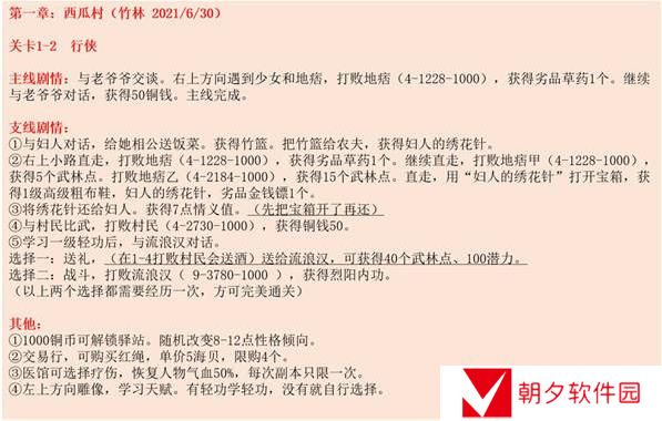 第二关 行侠(本关需要两次才能完美通关,第一次直接打败流浪汉,第二次去带1-4拿了酒再回来送给流浪汉。)提醒:1-2第一次不能完美通关,是因为流浪汉没送酒(已验证,将1-4的酒送给流浪汉,即为完美通关)。另外:1-2的绣花针,可以先打完地痞,开了宝箱,再还给妇人。不然就只能重置才能完美了。(文字版,下划线部分为后续完善)