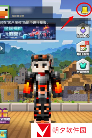 4、返回游戏主界面,点击右上方的系统消息图标。