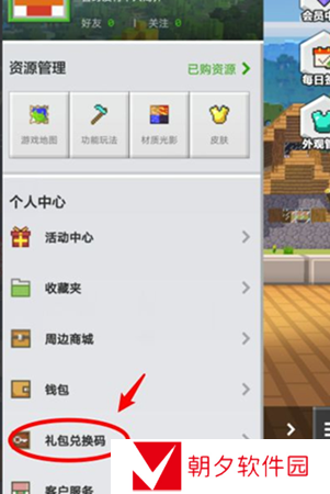 2、弹出个人中心页面,点击下方的礼包兑换码。
