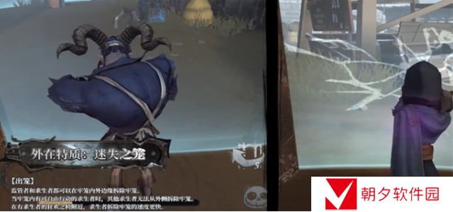 能够利用机关与幻觉制造出让人难以逃脱的牢笼,牢笼的边缘有实体碰撞,所有角色都无法直接进出牢笼,释放牢笼会消耗怨力,怨力每秒恢复2点且上限为120点,求生者在牢笼范围内会降低10%板窗交互速度。