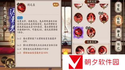 敌方每受到1个减益效果时,自身获得1层剑意,持续3回合。敌方阵亡时,提升自身30%行动条。