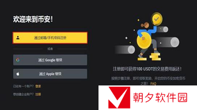 1、打开币安官网,点击左侧的【使用邮箱/手机号注册】