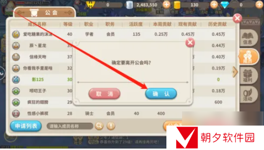 点击确认按钮,就可以成功的离开公会了