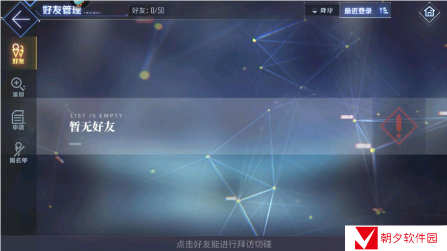 2、进入到好友管理界面,如下图,默认情况下是无好友的,接下来点击添加按钮
