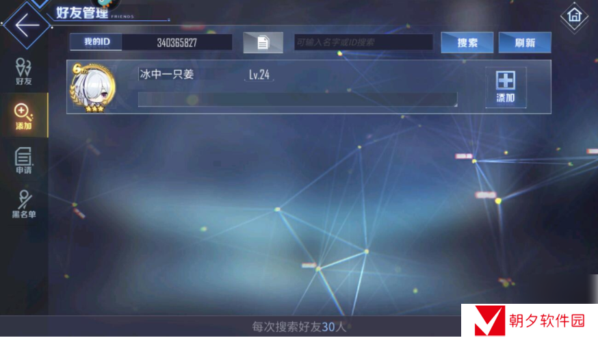 3、输入好友的名字或者ID搜索添加,也可以直接添加在线玩家