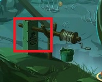 3、石像鬼悬崖处,红框这里装上之前在山洞里拿到的把手,点击使用后水桶会下去后再上来,点击水桶得到里面捞上来的纸条。这是后续需要用的提示。