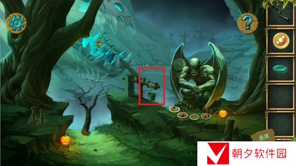 5、得到的菠萝其实是用在石像鬼悬崖边上水桶的,这里有一个菠萝图像的提示,把菠萝放进水桶后点击,用菠萝换到另一个绿点的纸条。