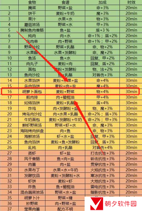 地下城堡3:魂之诗中的胡萝卜面包做的具体的配方就是胡萝卜面包=麦粉 野菜,加成物 4%,时效为30min,玩家制作成功后可以进行使用来增加自己的,加成物。