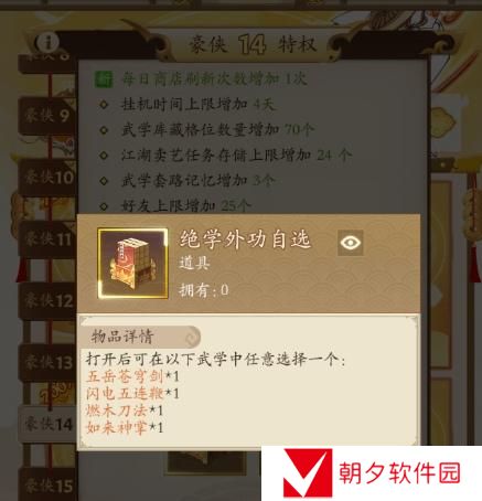 3、氪佬专属,豪侠(VIP)14(充值2W)送自选绝世,想玩那个选哪个,选错了没事,豪侠15还送一本自选。